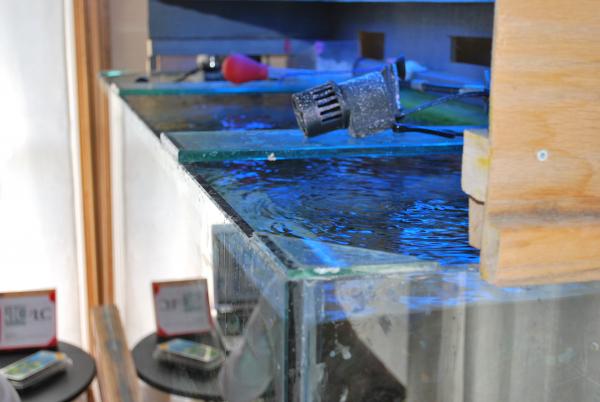 This one shows my 2 outside walls of the overflow and the divider. The kid's books was just used to prop the glass up will breaking it along the score line. http://i600.photobucket.com/albums/t...g?t=1238251906 This picture is to show that I got pretty close to 90 degree cut. I was surprised that the newly cut edges were not sharp. I could run my hand up and down the fresh edge quite comfortably. Sorry for the fuzzy picture (cell phone camera) http://i600.photobucket.com/albums/t...g?t=1238252008 And here my son being a goofball. He was helping me with the breaking of the glass. This picture shows the fresh cut :) http://i600.photobucket.com/albums/t...g?t=1238252126 Hopefully today or tomorrow I can drill the drain holes and assemble the box. I have to get a wire brush or something to clean the excess silicone of the edges though. I'm not too much of a fan of this. At least we have a bit of progress. |
