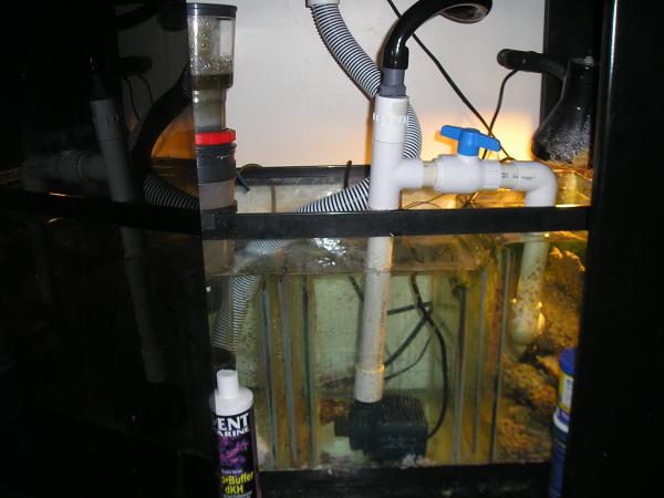 Added a vertex in-100 skimmer today (Thanks Red Coral) after reading the reviews on WWM by Bob Fenner. This thing is huge, had to revamp my sump a little by removing a baffle and making a stand for the 8" water level as my usual level is 11 inches.