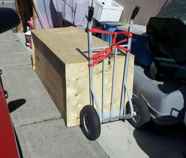 Here is the tank sitting beside the house. Still packed up from the trip up the Alaska highway. It is packed in a 1/2 inch plywood with 1/2 inch rigid foam around it.... I am keeping my fingers crossed that when I open it on the 18th all is good.